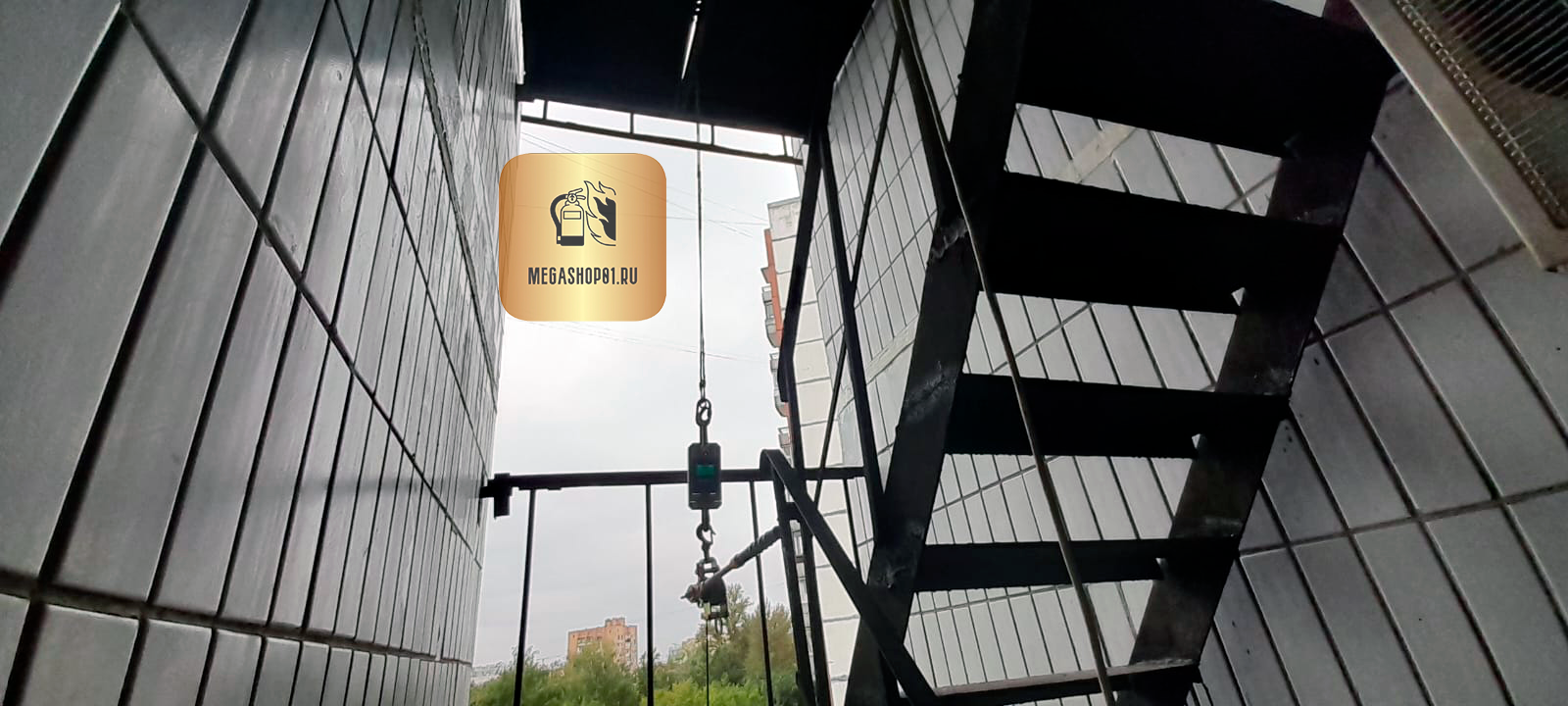 - Испытание под нагрузкой перильного ограждения лестничных маршей;